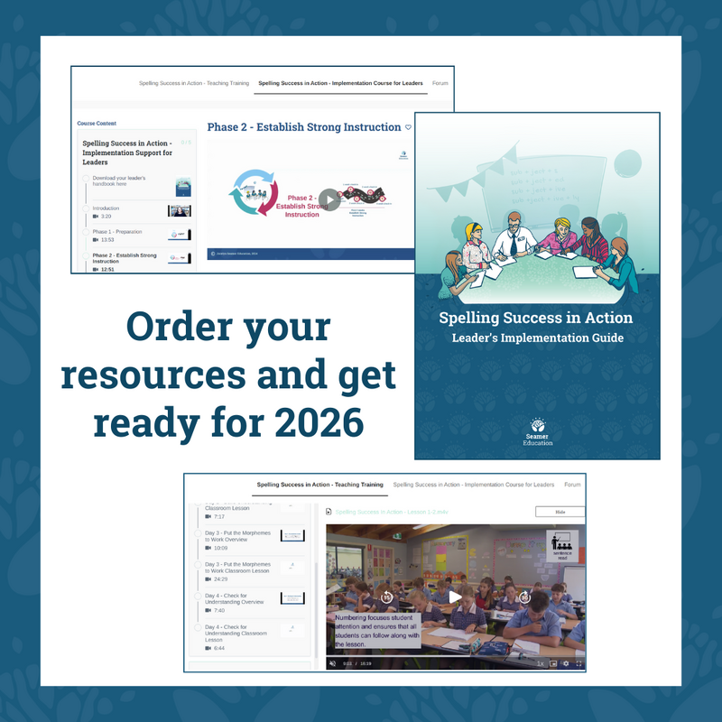 Spelling Success in Action 2 focuses on morphology, however information about spelling rule/conventions is included for the teacher in each unit. We recommend using the lessons inside Reading Success in Action 3 as 'catch up' work for phonics and foundational spelling rules in the Upper Primary and secondary grades.